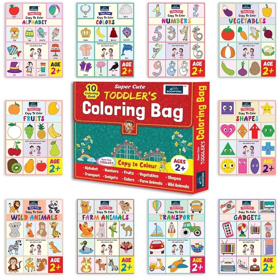 BOOKFORD Super Cute Toddler's Coloring Bag Set Of 10 Coloring Books For Kids| book | books | book set | kids books | books for kids | colouring book for kids